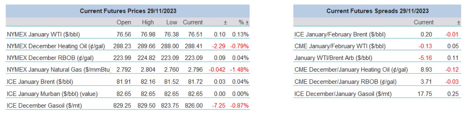 As always, those of an Oily bent, must keep an eye on what transpires in the macro world which for once is proving somewhat of boon. FEDspeak abounds, and wires have taken particular attention to the attitude of the Fed board member Christopher Waller, who for much of the run higher in US interest rates has been a mainstay for hawks. That is up and until yesterday, when in a talk he suggested that rate cuts could come in a matter of months, the usual flag bearers of such talk have reacted predictably, yields and the USD fall away and bonds and bourses put in a positive spurt. However, the macro world will have to negotiate some big ticket news in the next couple of days which include the gamut of consumer confidence, inflation markers and GDPs to name a few, but nothing in the wider suite will usurp whatever OPEC decision emerges, if indeed there is one.