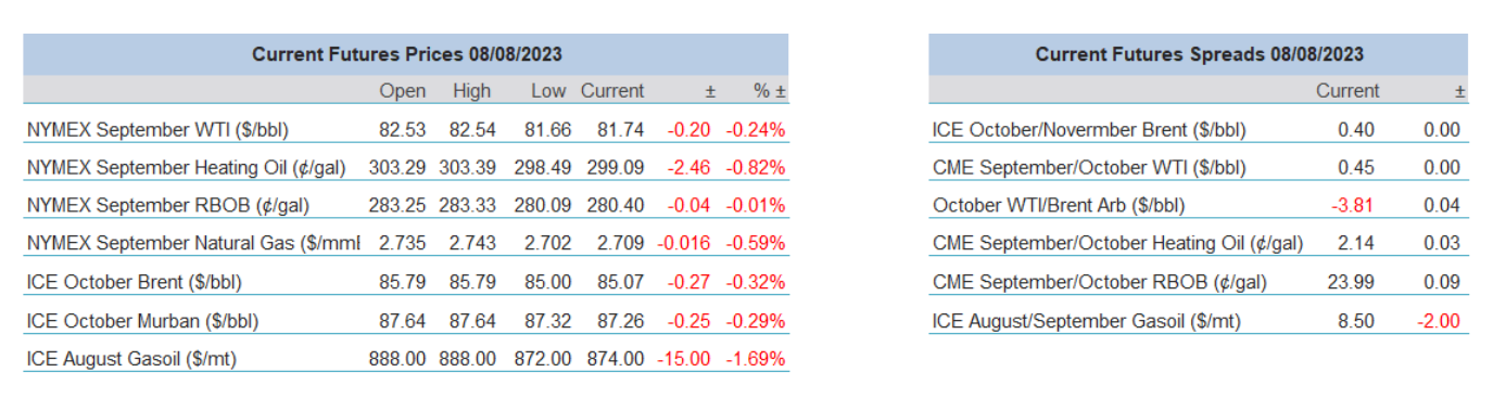 It still appears as if we are unable to escape the flux that China’s industrial complex finds itself in. Trade data this morning makes for poor reading and seems as far from a China rebound from when zero-COVID ended. Imports year-on-year (July 2023) were expected to come in at –5%, they disappointed to the tune of –12.4%. Similarly, exports for the same period were estimated to be –12.5% but were –14.5%. However, for oil watchers the data is a little less ominous. Customs figures shows July oil imports fell 18.8% from June with Reuters equating that in barrels as 10.29 million per day against July’s 12.67 million per day. Where a little comfort can be found is that imports still remain 17% higher than a year ago of 8.79 million barrels per day. Vortexa in a note said that Chinese stockpiles now amounted to some 1.02 billion barrels of crude. It does seem evident that refiners are running with a free hand as refined fuel exports were up 55.8% as the very decent refiner margins are targeted.