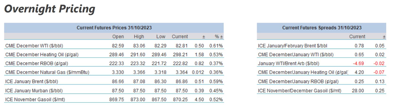 In the light of yesterday’s dump, the above call might seem bold and even irresponsible. Outright prices plunged nearly $3/bbl and spreads have also weakened meaningfully. Again, we believe that for the time being not much should be read into it. The market is volatile and even violent as it reacts to headlines and ignores medium to long-term developments. Take the performance of the January/February Brent spread as a gauge of the current market sentiment. During the last six sessions the closing values were as follows: 94 cents, 79 cents, 85 cents, 72 cents, 87 cents and 72 cents. There is no palpable trend, neither in outright prices nor in spreads. Our slightly optimistic view is based on supply side developments: the aforementioned cuts from OPEC+ and the potential disruption due to the Israeli-Palestine conflict. At the same time, we believe that economic headwinds will loosen the oil balance next year assuming no supply disruption. The Chinese economy will struggle as demonstrated overnight. The country’s manufacturing sector shrank this month, a sign of policy failure to shore up the economy. Entrenched inflationary pressure in the developed part of the world will keep borrowing costs high. For the remainder of this year, however, the supply deficit ought to be sufficient, with or without Middle East supply disruption, to hinder prices falling below $85/bbl basis Brent.