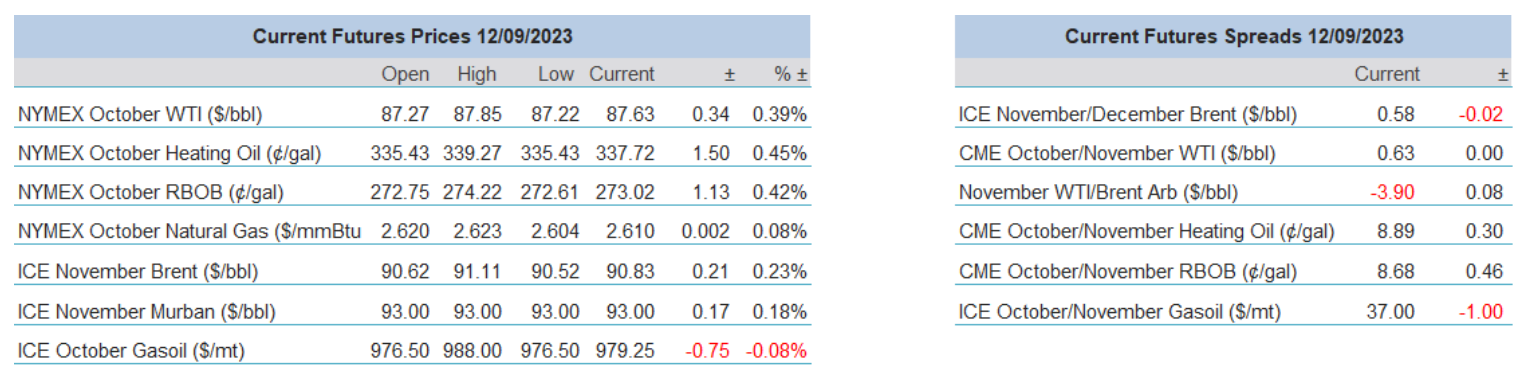 Oil steps into the morning firm but with an air of uncertainty as it faces a few days and news cycles that will have a great influence on its current destiny. Today will see the monthly oil reports from both the Energy Information Administration (EIA) and OPEC, tomorrow a release of the US CPI data and US inventory report and Thursday, the European Central Bank’s interest rate decision. There is little doubt that the oil industry feels a collective rally risk with a perception of, and actual tightening in parts of oil flow. Even the seemingly and seasonally unfancied RBOB Gasoline futures price has improved so much that it has, from a technical point of view, filled a higher gap left from last month’s expiry. WTI and Brent both made new 2023 yearly highs yesterday and the distillate contracts, Heating Oil and Gasoil remain the main drivers with refinery turnarounds foremost in market thinking. Maintenance at refineries in Russia has reduced fuel exports and even though this is not relevant to followers of sanction rules, refined fuel reduction from any source to any destination will make for a world bargaining over less product availability.