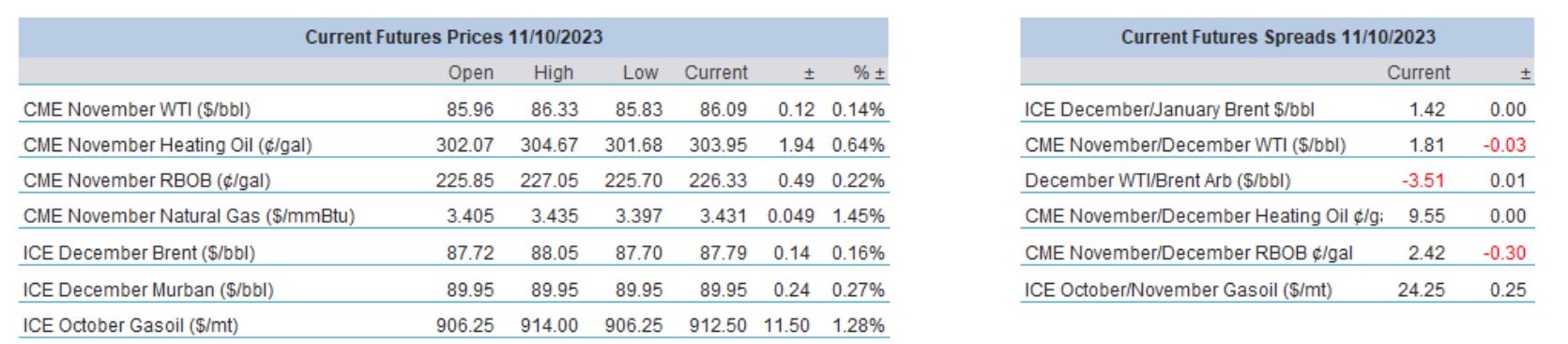 Although the tension between Israel and Hamas escalated yesterday investors remained admirably calm, at least compared to the understandably nervous session on Monday. The Israeli military have reportedly carried out strikes on 1,300 targets in Gaza, shelled south Lebanon and is preparing for a ground offensive. Yet, both WTI and Brent retreated yesterday as concerns of a sudden and unexpected supply disruption have been swept aside for now. Distillates, on the other hand, continues their journey north as Chevron halted the export of natural gas from Israel to Egypt through the East Mediterranean Gas pipeline. Adding to the geopolitical risk premium, the Balticconnector gas pipeline that runs under the Baltic Sea between Finland and Estonia was damaged in what was described as “outside activity” by the Finnish President. The threat of the strike of Australian LNG workers has not abated either. European natural gas prices rallied more than 20% in the last two days providing support for ICE Gasoil and indirectly to CME Heating Oil.