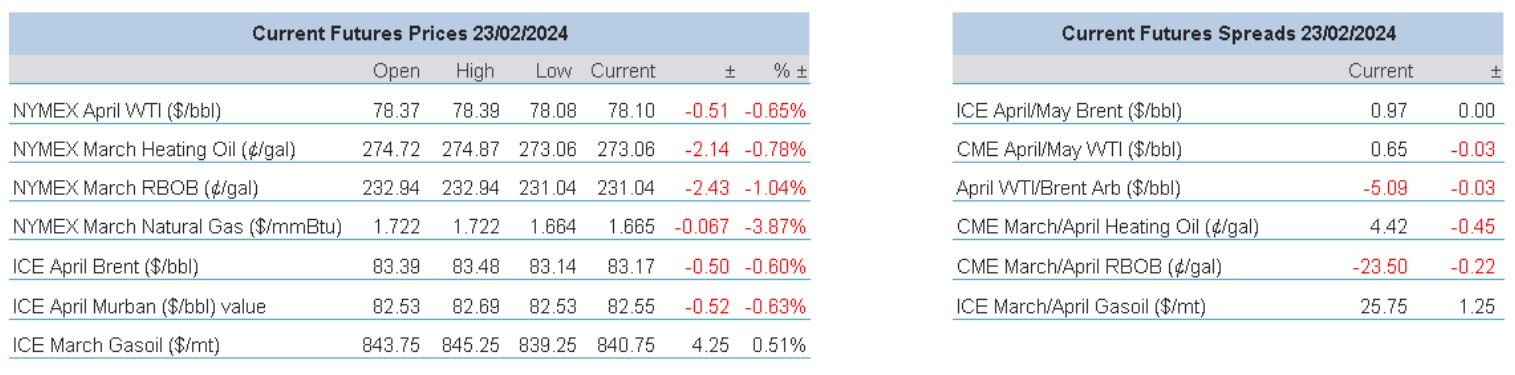 The lack of ceasefire progress becomes a heightened issue at the end of the trading week. Just taking the last 3 weeks as an example, M1 Brent has rallied into every Friday for fear of something untoward happening over the weekend. With Houthi aggressors now promising to attack freight via submarine methods, whatever that means, oil players ensure that positioning is apposite for any shipping damage or indeed conflict spread. It is also impossible to deny that the furore in equities, sparked by the stellar performance of NVIDIA keeps investor mood positive. Such is the power of the stock market rally that the US Dollar has lost ground, even in an environment that has seen yields improve, FED members such as Christopher Waller putting in a hawkish turn and the pricing of a FED pivot being pushed back even further with a US rate cut in May now down to 30% on the FedWatch tool. A strong argument for oil bulls comes from the heavily backwardated time spreads in the futures crude contracts offering a ‘tight’ market narrative, but with such low run rates from oil processors, such assumptions need more explanation rather than just acceptance.
