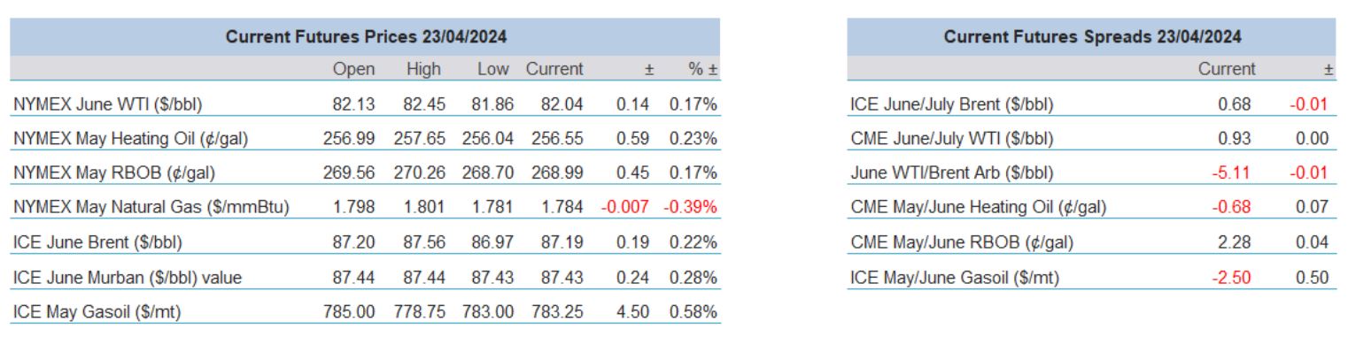 An eventual firmer session in all markets migrates into another day and although there are no particular catalysts, the flush out of length in oil after a bout of cooling in Middle East hostilities seems to be over. In much the same way the uncertainty of last week that caused investor flight in traditional instruments such as equities has similarly eased. Wider investors have enjoyed a torrid few days in which the reporting season has added anxiety to equities and the thus far darlings of the stock market rally such as Nvidia and Tesla have endured a high level of selling scrutiny as reporting and sales disappoint markets. Given an incident free week from Israel and Iran, oil watchers will have to look to the wider macro this week as there are some important impending data.