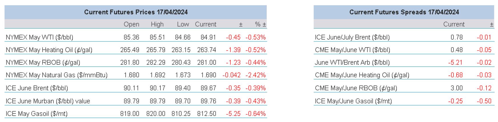 Dragging on everything is the continued inability for the US Federal Reserve to qualify in its own criteria for a cut in interest rates. There is no confidence that a current path to the hallowed 2% inflation is being walked. The US economy remains relatively hot as labour markets are strong along with retail sales, and when added to gasoline prices and housing costs, there is little wonder that yesterday Jerome Powell, the Fed Chair, backed off from any signals of a cut in interest rates. He pointed out that greater confidence was needed from the restrictive monetary policy which would be allowed to further time to work while evolving data would be continually scrutinised. The standard reaction played out in investment markets as yields rose along with US Dollar and equities have endured a very negative week with the three main US bourses losing 2% in five days. This has been exacerbated with book squaring in front of a slew of quarterly results, but risk-off by such a margin is hardly beneficial to oil prices, that outside of the geopolitical influence and positioning described above, finds another dampening factor in an API build of 4.1mbpd in crude stocks.