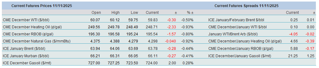 Oil prices remained volatile, at least on an intraday basis, but it is probably fair to conclude that without strong support from refined products, crude prices would be lower. The volume of oil on water continues to rise as China and India, possibly temporarily, have halted their purchases of Russian crude. Saudi Arabia, Iraq, and Kuwait have all lowered their December OSPs to Asia, another unmistakable sign of abundant crude oil supply. On the other hand, fresh US sanctions on major Russian oil producers and exporters are weighing on product exports. As a result, Heating Oil/Gasoil and RBOB are moving in a different direction from crude. The narrowing backwardation in WTI and Brent is notable; however, unless the rug is decisively pulled out from under refined products, and it is anyone’s guess when that might happen, no major sell-off in outright prices appears imminent.