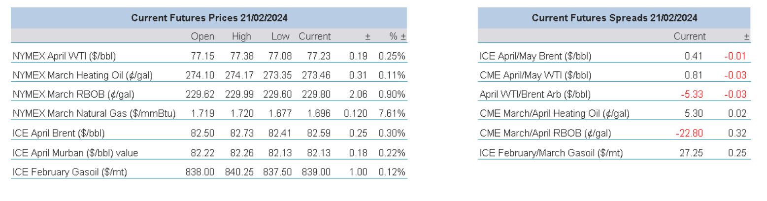 Oil prices took yesterday as day of correction which was inspired by a lack of any further conflict news from the world's clash points as markets had to settle on what was bothering the macro world. The bets of interest rate pivots were dealt a blow by the Reserve Bank of Australia minutes in which the governing board had actually considered a rate hike, and as the RBA is in the mix of probable policy accord with other central banks, investors yet again felt a hiccup in pivot prediction as to when the most important central bank of all, the FED, might alter course. Pricing is being pushed back again from May to June and in an interesting poll by Reuters, economists in the main predict that the cut might come even later in the year. US investors returning from holiday took a cue to ease exposure, particularly as today sees not only the FED minutes but the much awaited and darling of investors NVIDIA results.