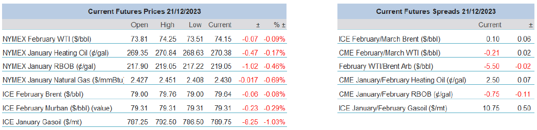 With such a heavy load of US crude reported in increased measure, one can only assume that the market remains edgy in regard to supply diversion or even hiatus caused by the Houthi attacks on shipping. According to Reuters yesterday, the situation remained rather unclear on the when and how many ships might be dispatched by the naval coalition to thwart the drone attacks, but the lack of clarity and little presence of counter measures so far has continued to see shipping companies not only diverting goods around the African Cape but even considering alternative transport measures to get customers wares to market. Commenting on reports that the US among others were considering strikes on Houthi bases within Yemen, Iran poured flames on geopolitical tension by saying such attack would be met with retaliation. Until the naval coalition, interestingly without Saudi Arabia's membership which adds to the intrigue and concern, shows its teeth, the Red Sea situation will continue to have an outsize influence on oil players' thinking.