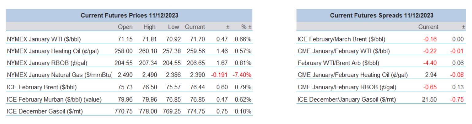Judging by Friday’s finishing numbers week-on-week there is little doubt that the oil complex remains in a state of vulnerability as the M1 months in the major futures contracts finished; thus, WTI -$2.84/barrel, Brent -$3.04/barrel, Heating Oil -8.05c/gal, RBOB -7.13c/gal and Gasoil -$32.5/tonne. Such is the extent of the decline in prices from the highs achieved after the October 7 Hamas incursion into Israel that there has been an erasing of both the geopolitical fear spike and all the gains made after Saudi Arabia started on its protracted voluntary production cut that commenced in July. But what technicians have been fascinating over is that WTI and Brent have been skirmishing with their 200-week moving averages (covered extensively in our technical report) which as of Friday valued at 70.35 and 74.24 respectively, whether or not one believes this is a buying opportunity or a signal for a price rout is a matter of judgement and taste, they are only highlighted here to example the extent of oil’s fall from grace.