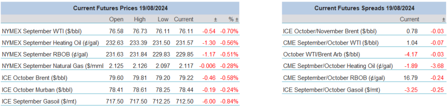 Last week was something of topsy turvy one. Eventually, and unlike the wider suite, the oil market was not able to extract itself from being besotted by the Middle East, at times pushed on by the hope in equities, only to be finally sat down in an unchanged fashion by China. As much as the driver in oil prices at present comes from the United States, the short comings of the biggest importer of oil in the world dampens the outlook for demand. The House Price Index, Fixed Asset Investment, Industrial Production and Unemployment Rate failed to make expectation and although reaction took time to be reflected in prices, the weak Chinese data eventually smothered any upward momentum. For the front month in futures, WTI ended the week -$0.19/barrel (-0.25%), Brent +$0.02/barrel (+0.03%), Heating Oil -1.10c/gallon (-0.47%), RBOB -8.01c/gallon (-3.35%) and Gasoil -$1.75/tonne. The worrisome state of Chinese demand was one of the main takeaways from both the OPEC and IEA monthly reports and one in which they unusually found agreement, this was backed up a rapid fall in refinery processing due to poor fuel demand. It is interesting to note that the draw in Gasoline inventories in the weekly EIA statistics failed to stop RBOB being the worst performer in the oil futures complex and brings an argument that market participants are feeling time decay on the idea of a summer driving season and third quarter demand. As it is, refiner margin remains pressured by the high prices of US crudes. Lastly, with Iran failing so far to make good on its retaliatory promise of an attack on Israel and Hamas not turning up to a ceasefire meeting that bizarrely went ahead without them, the market reverted to concluding that as no barrels were being taken away from the market, the affected emotional rallies became unwarranted.